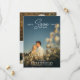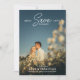 Double sided save the date card with a romantic typography design focused on the wedding date atop a photo of the happy couple. Add three more photos to the back in a clean collage. Save the date template card personalised with photos.