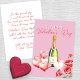 This customisable Valentine's flat greeting card is a perfect blend of romance and festivity, designed to make your loved one's heart flutter. The front of the card features the text "HAPPY Valentine's Day" in elegant white and red fonts against a soft pink background. Below the text, an illustration of a champagne bottle labelled "CHAMPAGNE" with a heart symbol is surrounded by heart-shaped balloons in shades of pink and white. To the right of the champagne bottle, beautifully detailed red roses add a touch of classic romance to the design. The text on the front and the back of the card is fully customisable, allowing you to add your own personal message. This card is available as an instant digital download, making it a convenient and thoughtful choice for Valentine's Day.