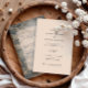 Set the tone for a timeless celebration with this elegant antique-inspired wedding invitation. Featuring a romantic vintage landscape illustration framed by soft botanical detailing in muted blue and warm beige tones, this design evokes classic European tapestries and heirloom stationery.