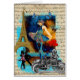 Pretty feminine romantic contemporary collage of dancers and girl in with the Eiffel tower Paris France, butterflies and a funny steampunk car old book vintage illustration with an indian chief holding romantic red love heart balloons on a blue distressed background with an old handwritten letter text. Customise this design by adding your own text.