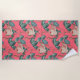 Romantic Vintage Roses on Pink Pattern Beach Towel