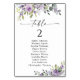 Romantic Violet Flower Table Seating Chart Cards