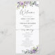 This Romantic Violet Flowers Wedding Program template offers a beautiful and organised way to guide your guests through your ceremony, featuring delicate Violet Flowers combined with lush greenery for a soft, romantic botanical aesthetic. The elegant blend of rich violet tones and natural green accents creates a timeless design that complements both classic and garden-inspired weddings. With its fully editable format, you can easily customise the order of events, names, and special notes to match your celebration. Perfect for both print and digital use, this program adds a refined and cohesive touch to your wedding stationery suite.