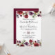 Romantic Watercolor Burgundy Red Blush Rose Floral Invitation