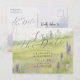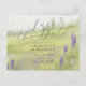 Romantic watercolor landscape save the date postcard, featuring a field of wildflowers.