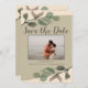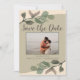 Dreamy and romantic, this cream and green with hints of purple watercolor leaf wedding save the date is a great way to set a sophisticated tone for your wedding day! Customise it with all your personal wedding details and go one step further with an engagement photo.