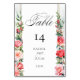 Elegant columns of vibrant pink and blush watercolor roses and sage foliage bordering a centre blank label with thin gradient gold bands on a subtle watercolor background. Includes editable text fields and "Table" text graphic in custom script font (or delete and customise in the design editor).