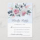 Classy and elegant wedding RSVP card featuring pink and white watercolor roses and light blue background.