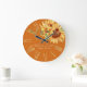 Romantic Watercolor Sunflowers on Burnt Orange Large Clock