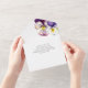 This romantic floral wedding invitation features an all-in-one design with an R.S.V.P. card included at the bottom. The background is a simple and elegant white on the top and bottom portions, with purple watercolor violets. The centre portion is a dusty lavender purple colour. A delicate bouquet of violet flowers is picture on the front flap, and two on the inside portion.