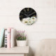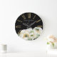 Romantic Watercolor White Ranunculus on Black Large Clock