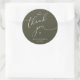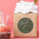Modern Wedding minimalist Thank You Cookies Gifts Classic favors Round Sticker, in romantic script, little heart, with bride and groom signature and wedding date, olive green theme.