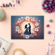 Romantic wedding couple silhouette framed by a soft pastel floral wreath, evoking love, celebration and timeless elegance; ideal for invitations, wedding stationery, romance themes and floral design projects.