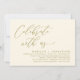 Mark the beginning of your forever with elegance using our romantic contemporary classy yellow gold theme wedding elopement happily ever after lunch, brunch, reception dinner party celebration invitation card, "Celebrate with us". Perfect for couples extending their joyous occasion, this invitation exudes sophistication with a hint of playfulness, setting the stage for a memorable event. Adorned with a timeless modern script design theme, it adds a touch of refined charm to your festivities. Crafted by TeeshaDerrick, this invitation promises to beautifully capture your love story.