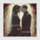 A bride and groom in stunning black wedding attire stand framed by roses. This scene captures romance, elegance, and passion—an unforgettable moment filled with love and timeless beauty.