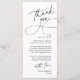 A Heartfelt Greeting for Your Wedding Guests Welcome your loved ones to their seats with this elegant romantic script, minimalist "thank you" dinner place setting card. Designed to fit perfectly as a 4x9" place setting or plate card, this piece features romantic, airy calligraphy that expresses thank you with your deep gratitude to the family and friends who have supported your journey.