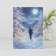 The design, carefully crafted with soft and detailed strokes, highlights the forest and vegetation, integrating festive elements that add a charming and elegant touch. The composition conveys a romantic, mystical, and refined vibe, ideal for those seeking a card with a distinctive and memorable style.