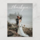 Romantic Wedding Custom Script Thank you Photo Card Postcard. Customisable text. The front neutral density filter can be removed, changed or edited. Remove, add or edit text. Modern Romantic Script image. Great addition to any wedding invitation suite. This card has the bride and groom names and wedding date on the front. Both the wedding date and the names can be removed by simply deleting the text in the customise option.