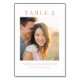 This is a romantic style image featuring a warm and intimate portrait of a couple, bathed in soft golden light. The composition highlights their joyful expressions and close bond, creating an inviting and affectionate mood. The elegant table number "Table 2" at the top adds a touch of sophistication, making it perfect for wedding decor or seating arrangements. It evokes feelings of love and celebration.