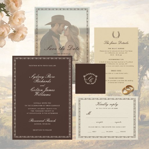 Announce your wedding with our Romantic Western Save the Date, blending rustic charm and sophistication. This piece captures an upscale western theme for a memorable event.