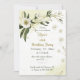 Romantic white and gold flowers with green leaves geometric birthday party invitation