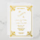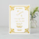 An elegant and romantic Gold Foil Frame on a White background with gold coloured text on this gorgeous wedding invitation.