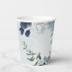 Beautiful botanical paper cup featuring romantic white, dusty blue and navy blue flowers with green leaves.