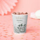 Unique paper cup featuring romantic white flowers and green leaves.