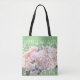 Romantic white pink hydrangeas, pink white flowers tote bag