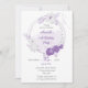 Romantic birthday party invitation featuring white and purple flowers on a pretty circles geometric frame.