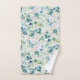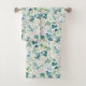 Beautiful white rose floral pattern bathroom towel set on a white background with light green leaves.