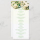 Beautiful, romantic wedding program with white roses and green, elegant font.