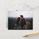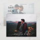 Modern photo wedding Save the Date postcards feature your photo on the front with Save the Date in chic white lettering. Your details and deliver to info on the back. Use the Customise further link and using our editing tools to make changes. Choose High-Definition printing option for better photo quality. Choose Matte paper for heavier paper.