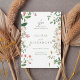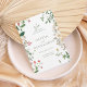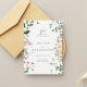 The clean white background enhances the fresh botanical artwork, while elegant serif lettering paired with subtle script accents gives the invitation a classic yet modern feel. The soft green typography complements the natural florals, making this design perfect for garden weddings, spring and summer ceremonies, outdoor celebrations, or romantic countryside venues.