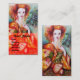 ROMANTIC WOMAN WITH SPARKLING PEACOCK FEATHER,red Business Card
