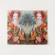 ROMANTIC WOMAN WITH SPARKLING PEACOCK FEATHER TAPESTRY