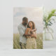 This invitation features a romantic and serene design with two individuals embracing in a field of tall grass and wildflowers. The color palette includes soft, natural tones like light blue-gray for the shirt and yellow with white floral patterns for the dress, creating a warm and inviting atmosphere. The photographic style captures realistic details and textures, emphasizing the tender connection between the subjects. Perfect for celebrating love and joy, this design evokes feelings of contentment and is ideal for weddings or engagements.