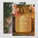 A romantic Save the Date card with a wine theme, featuring grapes and peach coloured roses on a gold artistic with wine barrel background with festive string lights. If you don't want to use your own photo on the back, you can delete the template photo and reveal an image of roses on a wine barrel background. Beautiful for a planned vineyard or winery wedding or anniversary.