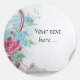 Elegant,classy,vibrant and classic floral design. Red, pink roses ,blue flowers with a white dove carrying a letter in a seascape .