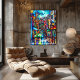 A vibrant poster of Rome in bold colors and geometric style, featuring classic Italian streets and landmarks. This artwork captures the energy and charm of the Eternal City in a modern pop art style, perfect for wall decor, gifts for travel lovers, or anyone inspired by Italy. Ideal for living rooms, offices, or bedrooms.