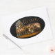 The incredible Roman Colosseum has stood for almost 2000 years. It is said that should the Coliseum fall, so shall Rome. The southern portion was partially destroyed in an earthquake. In this photograph, the imposing structure is illuminated in the black of night. This oval shaped sticker is fully customisable.