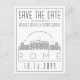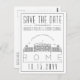 A unique wedding save-the-date postcard for a marriage taking place in the beautiful city of Rome, Italy. This invitation features a stylised illustration of the city's unique skyline with its name underneath. This is followed by your wedding day information in a matching open lined style. On the reverse side of the post is your address information. All individual elements of the invite card are unlocked so feel free to change any details necessary such as font sizes, styles and more by using the customisation function. You can add a photo to the reverse side and add a black and white filter to it.
