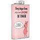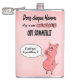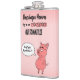 The flask itself is fine. It’s a cheap flask, obviously bought in bulk, however am prepared to overlook that. Given that it is a personalized item, I would have liked to have seen gift boxing instead of the generic packaging. Terrible printing, and/or quality. It’s a cheap, tacky vinyl. It is not cut straight and is also applied in a way that it is overhanging the bottom, causing the glue to catch on items and it will eventually roll and tear, damaging the wrap.