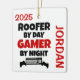 This ornament featuring the quote "Roofer by Day Gamer by Night" is perfect for any roofer that loves playing video games.