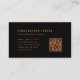 Help your roofing business stand out from the crowd with this bold, eye-catching black and copper business card. The copper faux brushed metal roof logo is paired with copper-colored text to highlight your business name, contact information and other details. A QR code on the back takes customers and clients to your website.