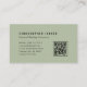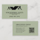 Spread the word about your roofing business with this simple sage green and black business card. A black roof logo and black text appear on a sage green background. Add your business name, contact information and other details. A QR code on the back takes customers and clients to your website.