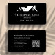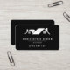 Spread the word about your roofing business with this simple black and white business card featuring rounded corners. A white roof logo and white text appear on a black background. Add your business name, contact information and other details. A QR code on the back takes customers and clients to your website.