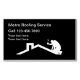Roofing service business card magnet template including a simple black and white design with house roof and roofer with a hammer in his hand at work. Designed for a roofing service, home remodeling, or construction contractor.