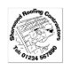 Fun Roofing Contractors cartoon illustration shows a man tiling a house roof. Personalize it with your choice of business name and contact number.