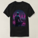 Immerse yourself in the profound solitude of the future with our "Rooftop Android City Gaze Tee." This captivating design features a humanoid android, its metallic skin gleaming with reflections of neon lights, as it sits thoughtfully on a rain-slicked rooftop. Gazing at a distant, glowing city under soft falling rain, the android conveys an emotionless yet deeply contemplative expression. The artwork masterfully blends retro-futuristic aesthetics with 80s tech elements and a dark, cinematic tone. Dominated by a cool magenta-blue palette, the detailed textures and mood-heavy lighting create a powerful visual narrative. This minimalist yet impactful composition is perfectly centred for apparel printing, embodying a unique retro sci-fi art style. It's an ideal choice for enthusiasts of cyberpunk, synthwave, futuristic art, or anyone who appreciates a design that sparks introspection and showcases the beauty of a melancholic future.